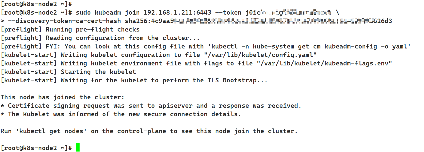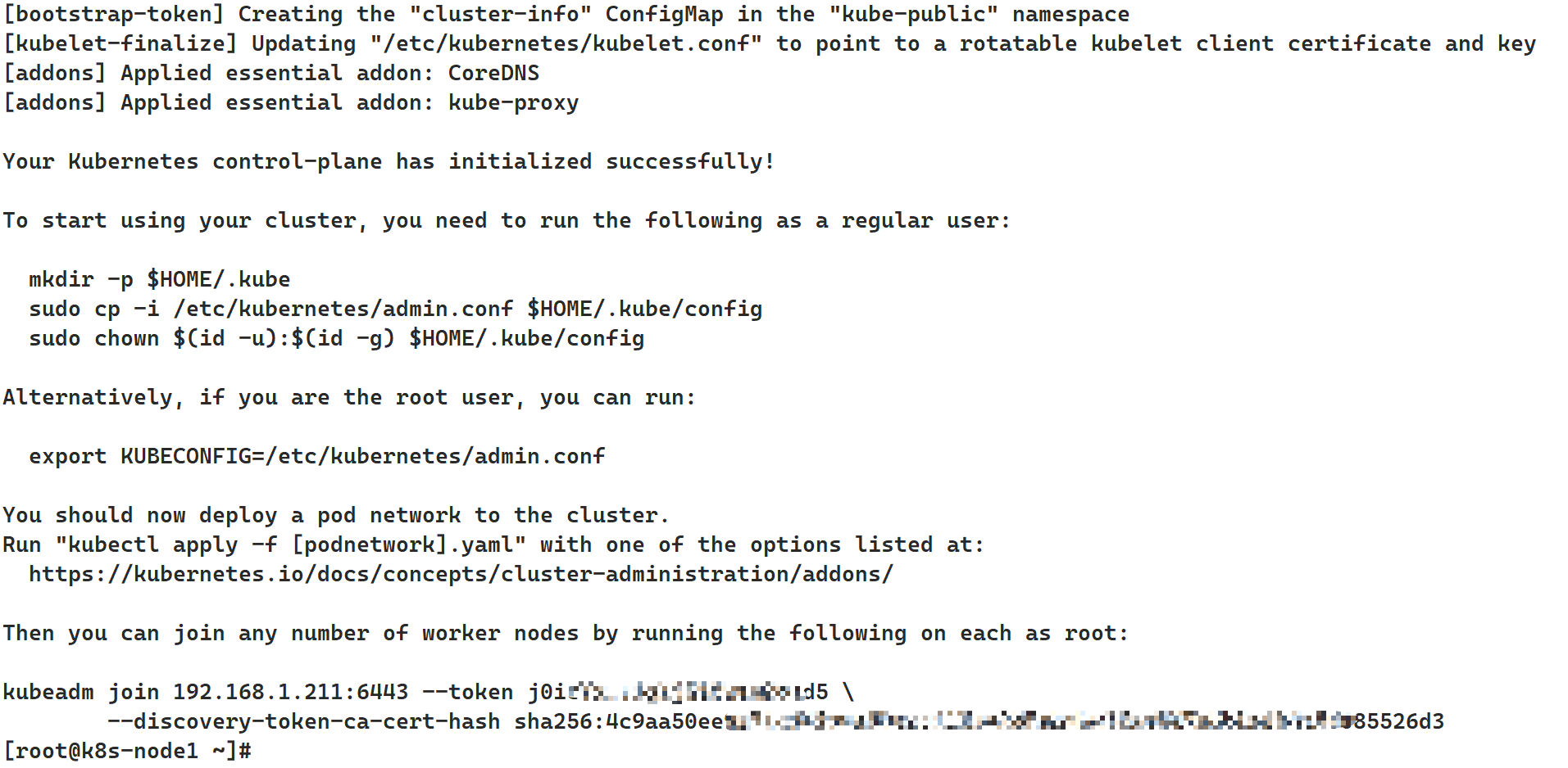 sudo kubeadm join 192.168.1.211:6443 --token j0ixxxxxxxxxxxxxxd5 \