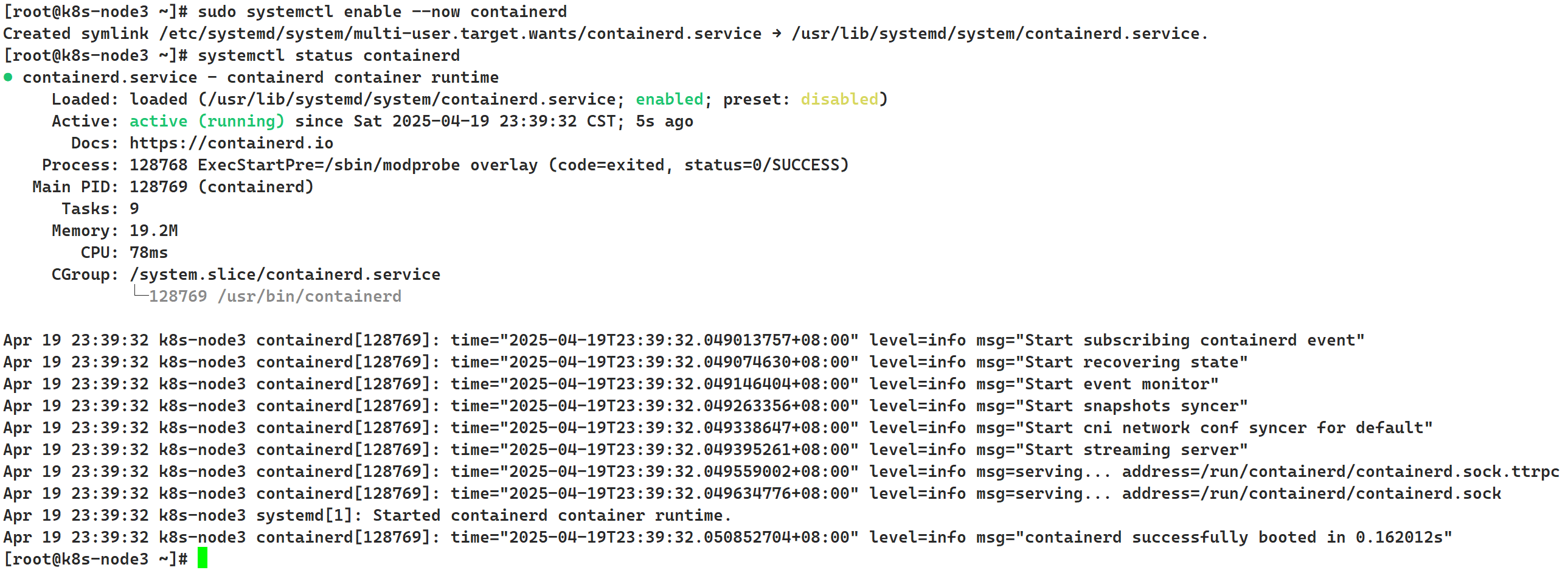 sudo systemctl enable --now containerd