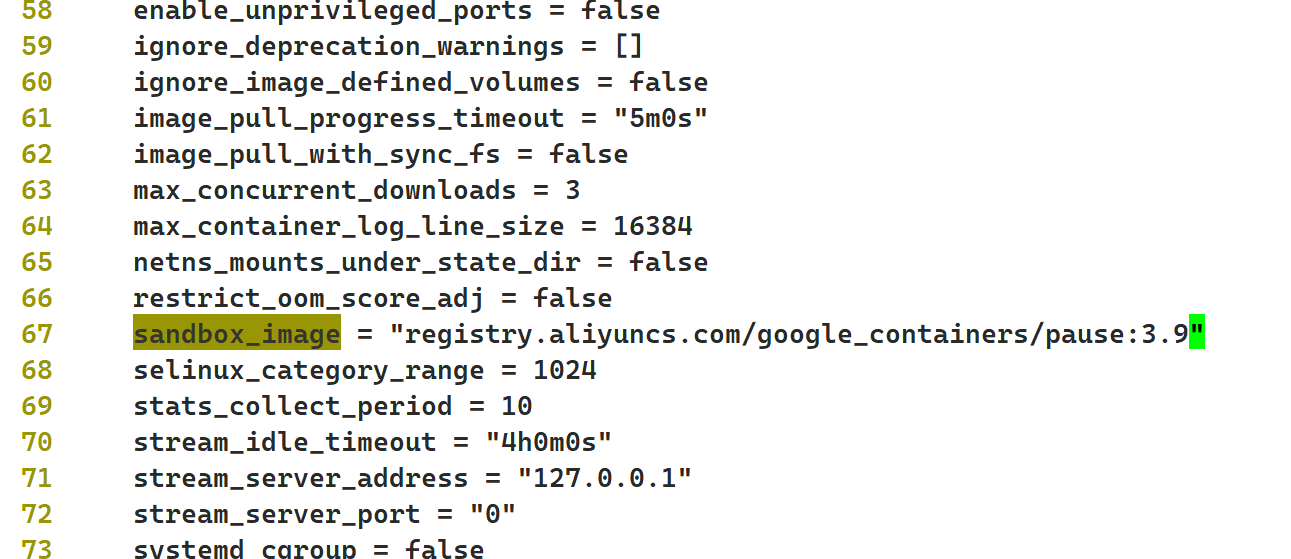 执行vim /etc/containerd/config.toml,将sandbox_image = "registry.k8s.io/pause:3.8"改为 sandbox_image = "registry.aliyuncs.com/google_containers/pause:3.9"
