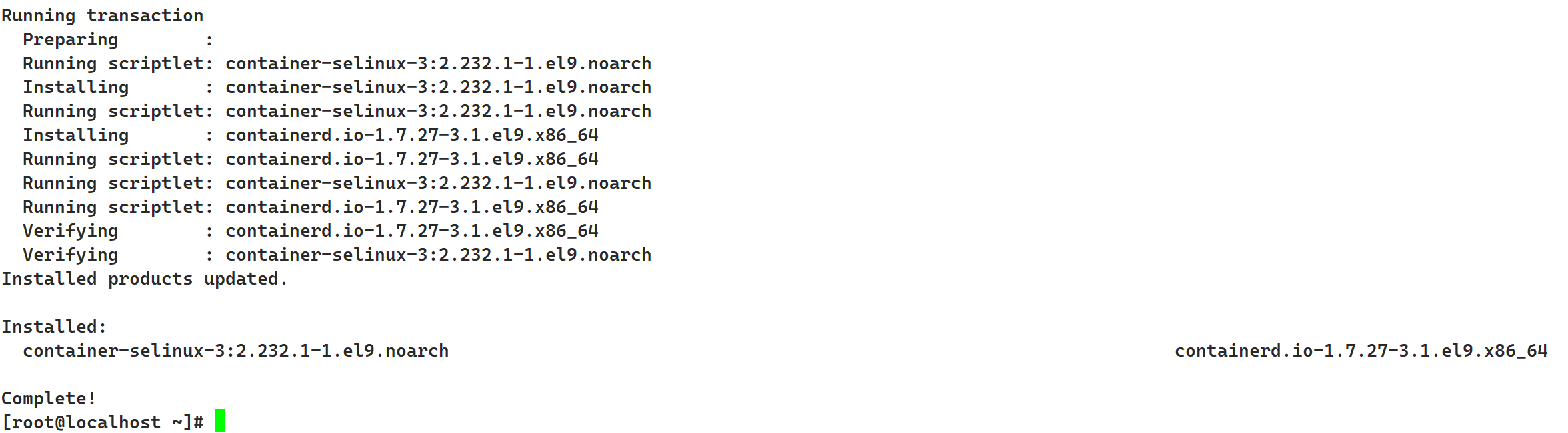 sudo dnf install -y containerd.io