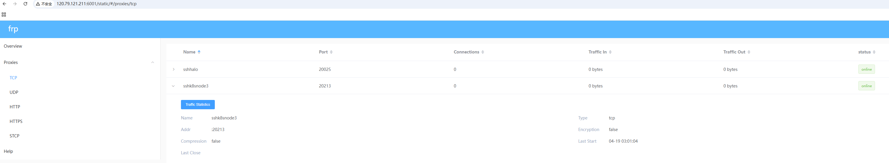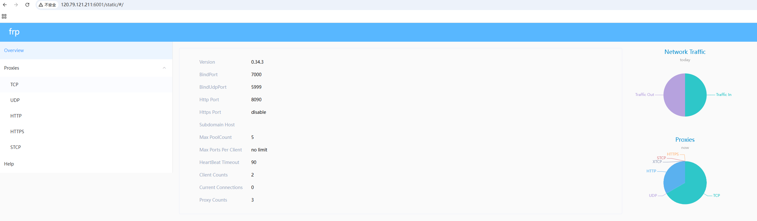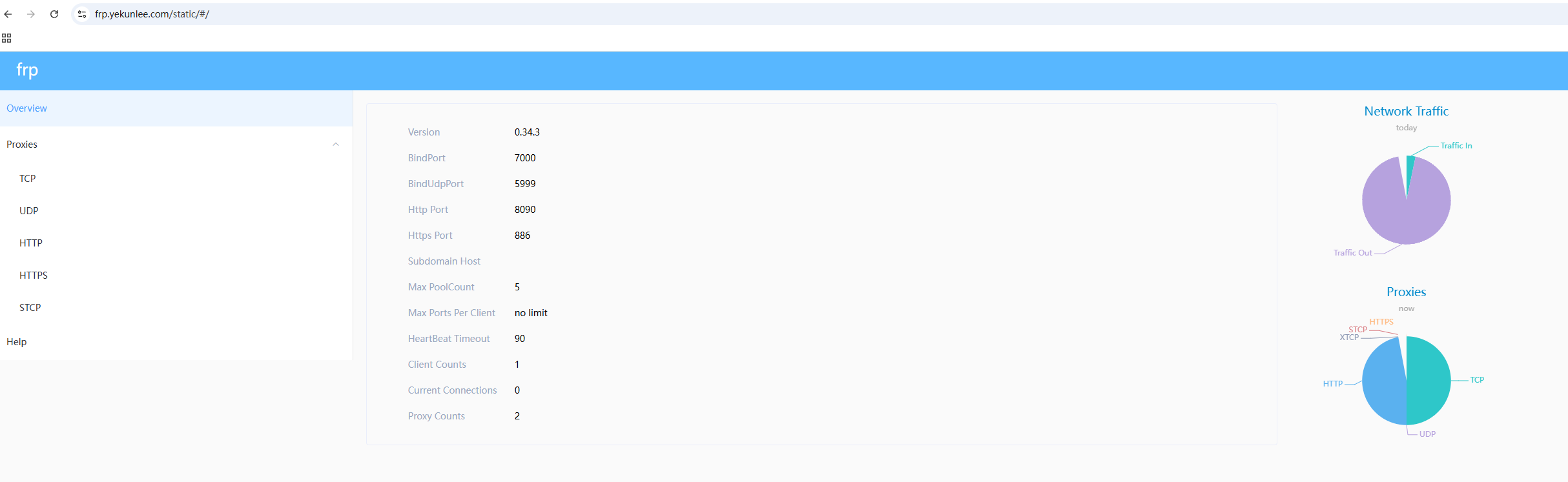 如下图,访问https://frp.yekunlee.com/static/#/成功进入frp的web页面