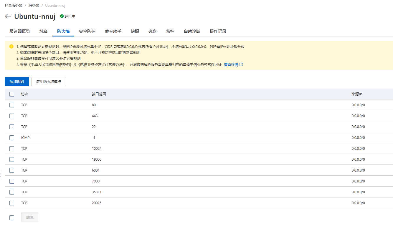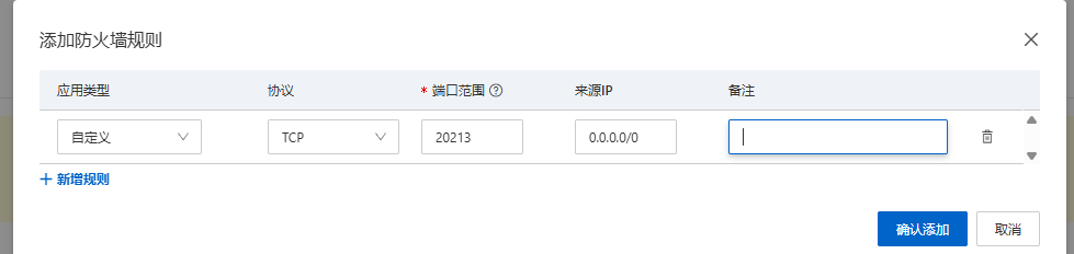 服务端放通防火墙端口,即在阿里云配置防火墙放通端口: