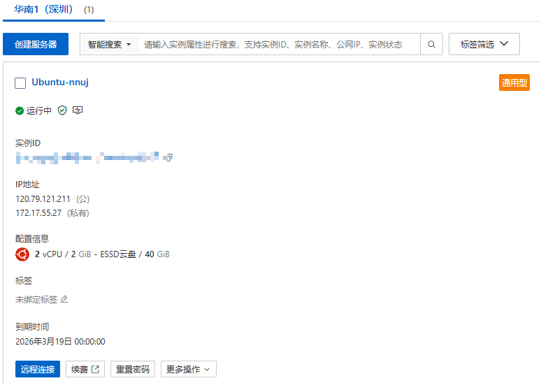 作者本人是阿里云的服务器,2C2G,公网IP:120.79.121.211