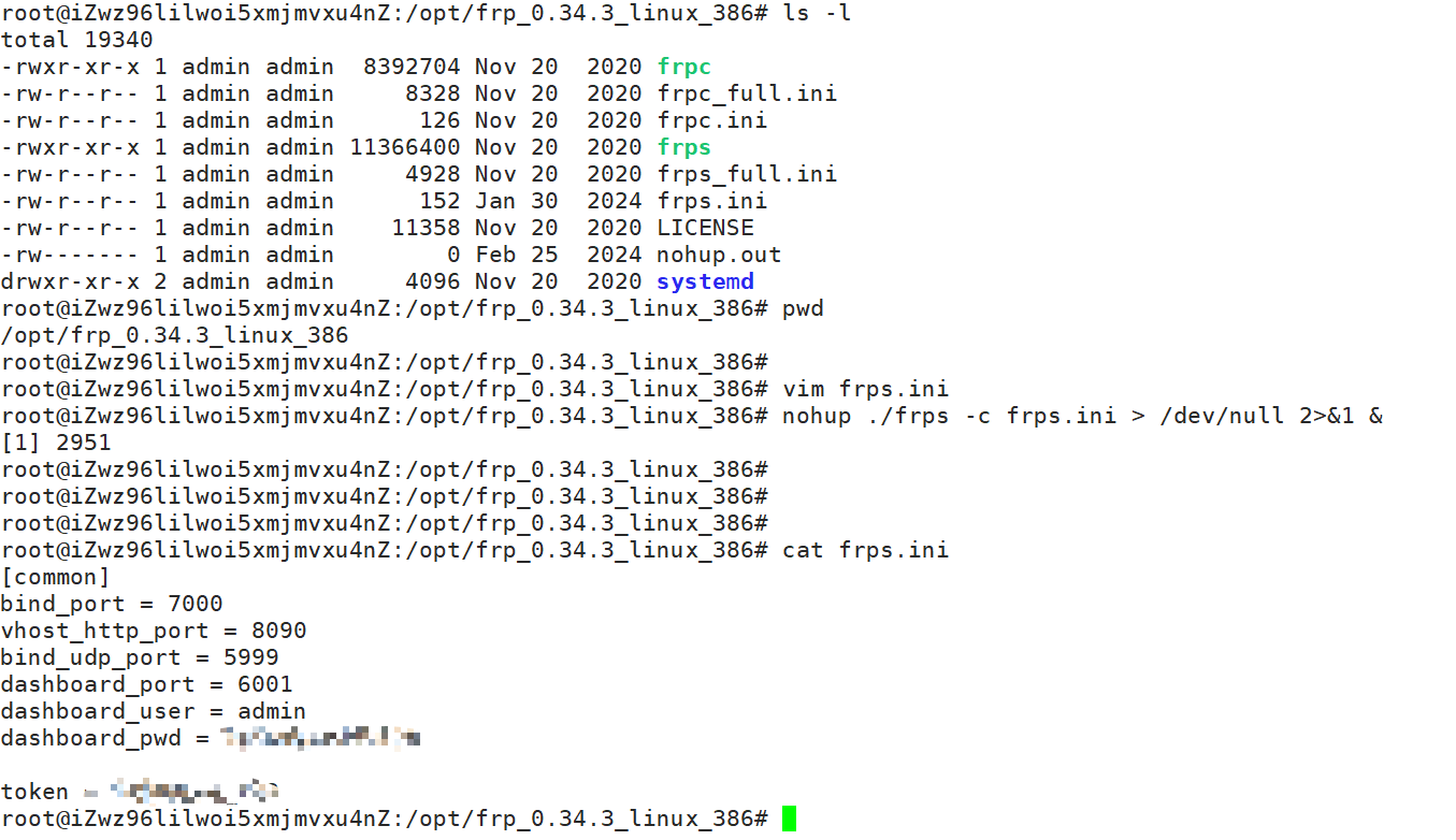 nohup ./frps -c frps.ini > /dev/null 2>&1 &