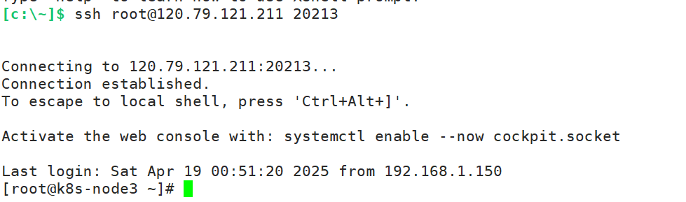 如下图,可以看到阿里云服务器的20213端口已经穿透到node3的内网22端口了