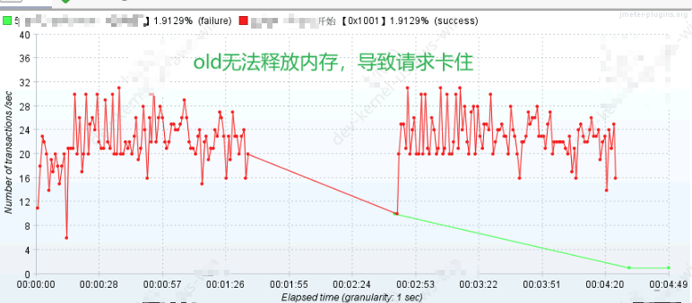 压测某个设备IoT接口,不到1min出现TPS卡顿现象,长时间没响应。如下图: