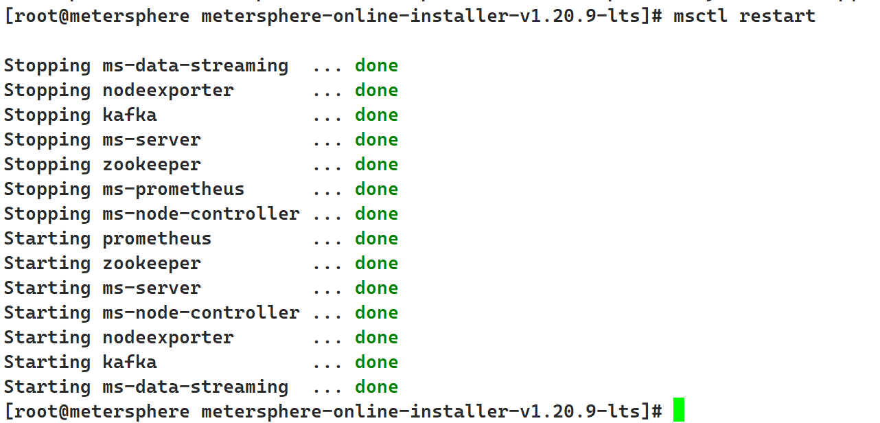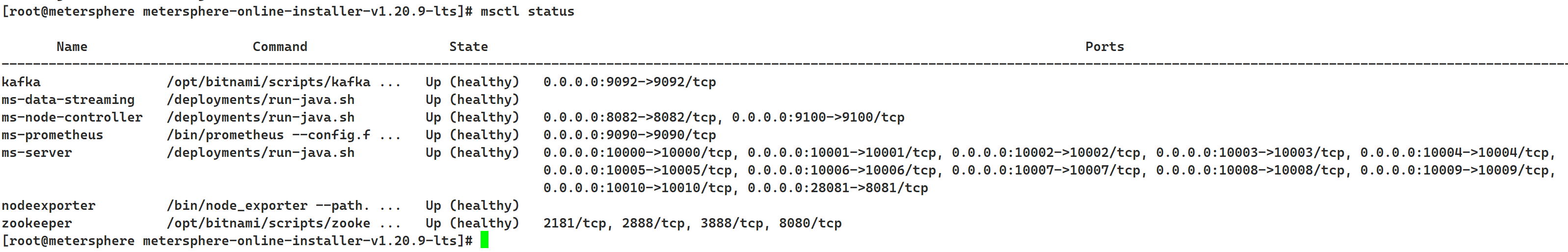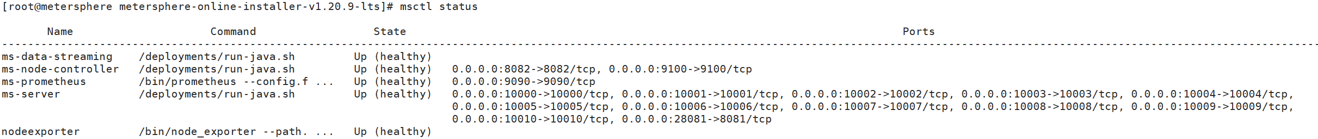 安装完成meterSphere后,启动成功,所有服务状态全部正常,