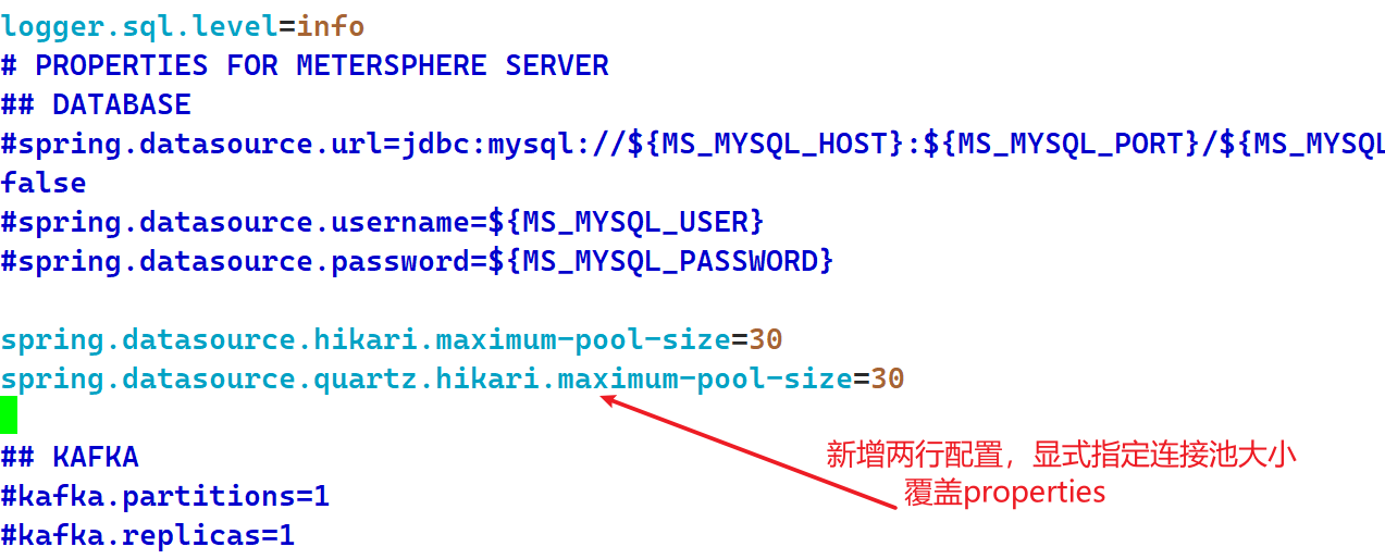 因此考虑显示新增全局配置,覆盖properties文件中的连接池配置,