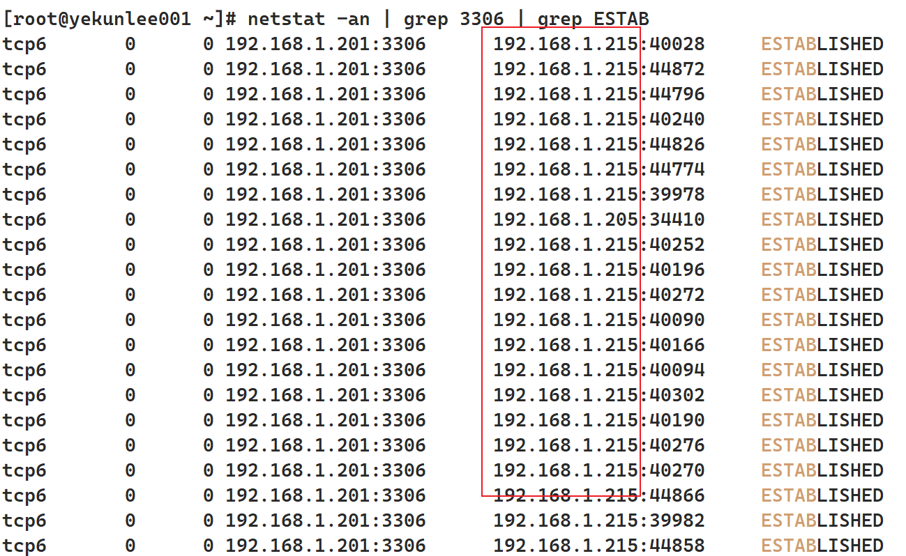 在MySQL数据库服务器上查看连接,观察到是meterSphere所在服务器的IP地址占用的连接最多
