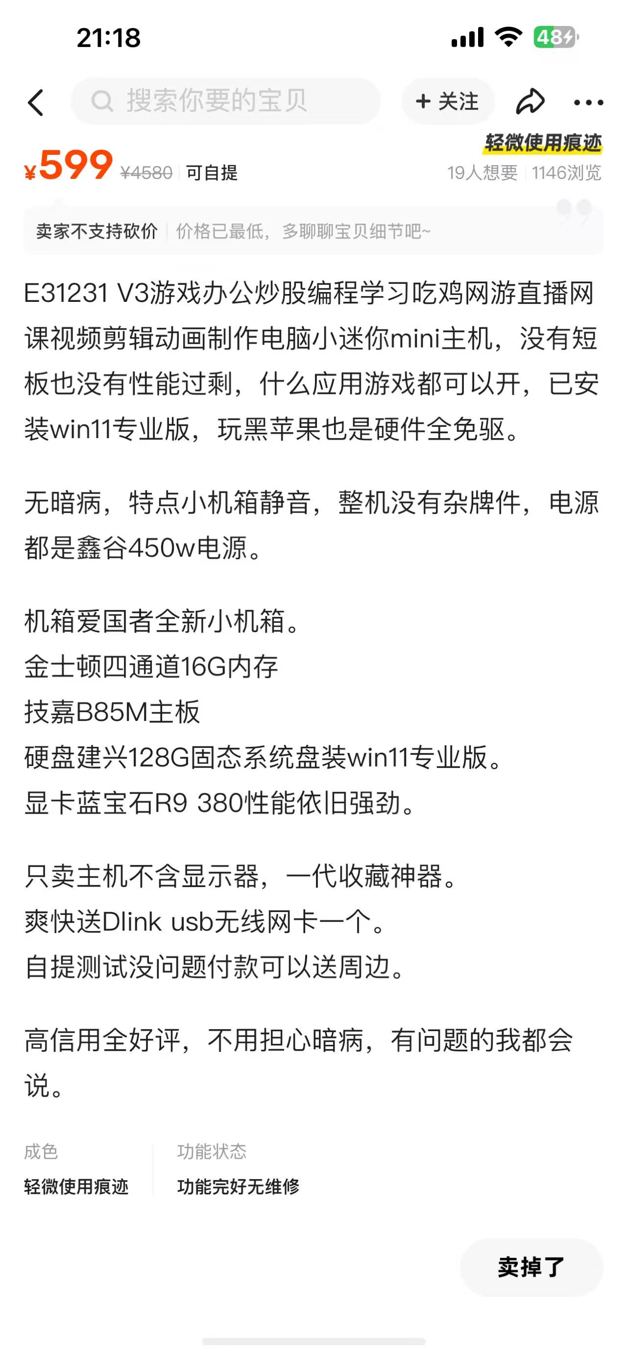 但是多年过去现在整机价格变低了,如果读者想要自己购买二手散件进行装机也可以,价格更低。