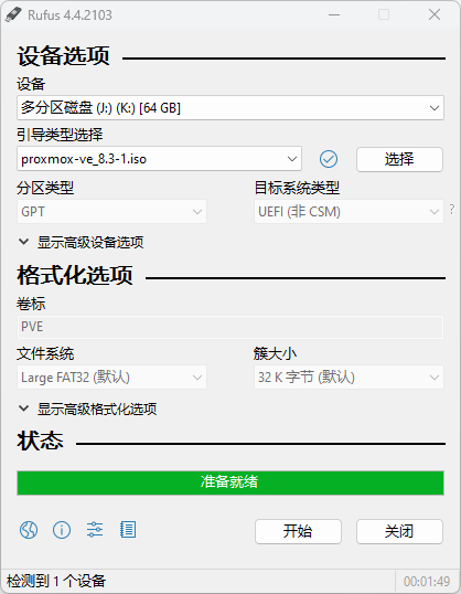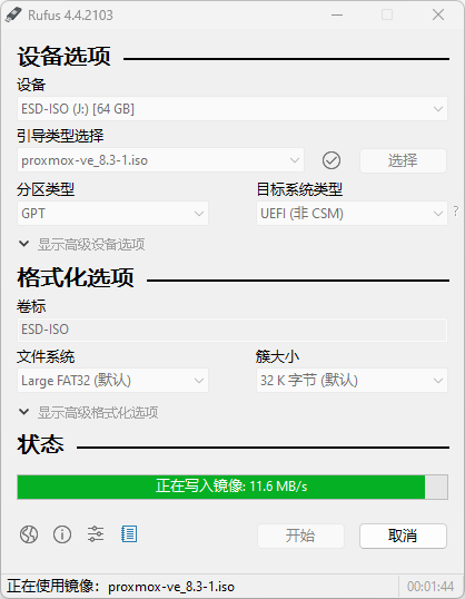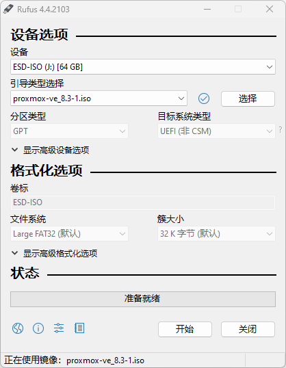 3、下载安装Rufus,创建 USB 启动盘,将可引导ISO文件刻录到USB安装媒介。