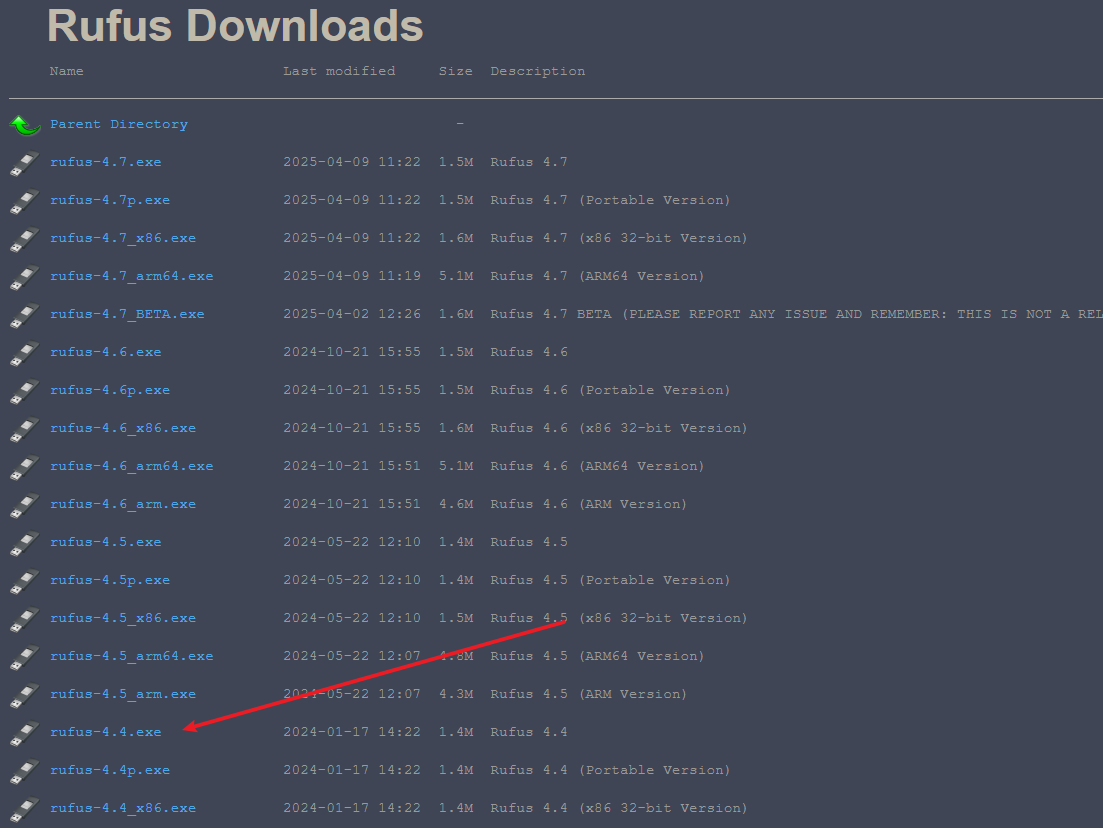 可从官网 https://rufus.ie/downloads/ 下载,作者本人选的是4.4版本