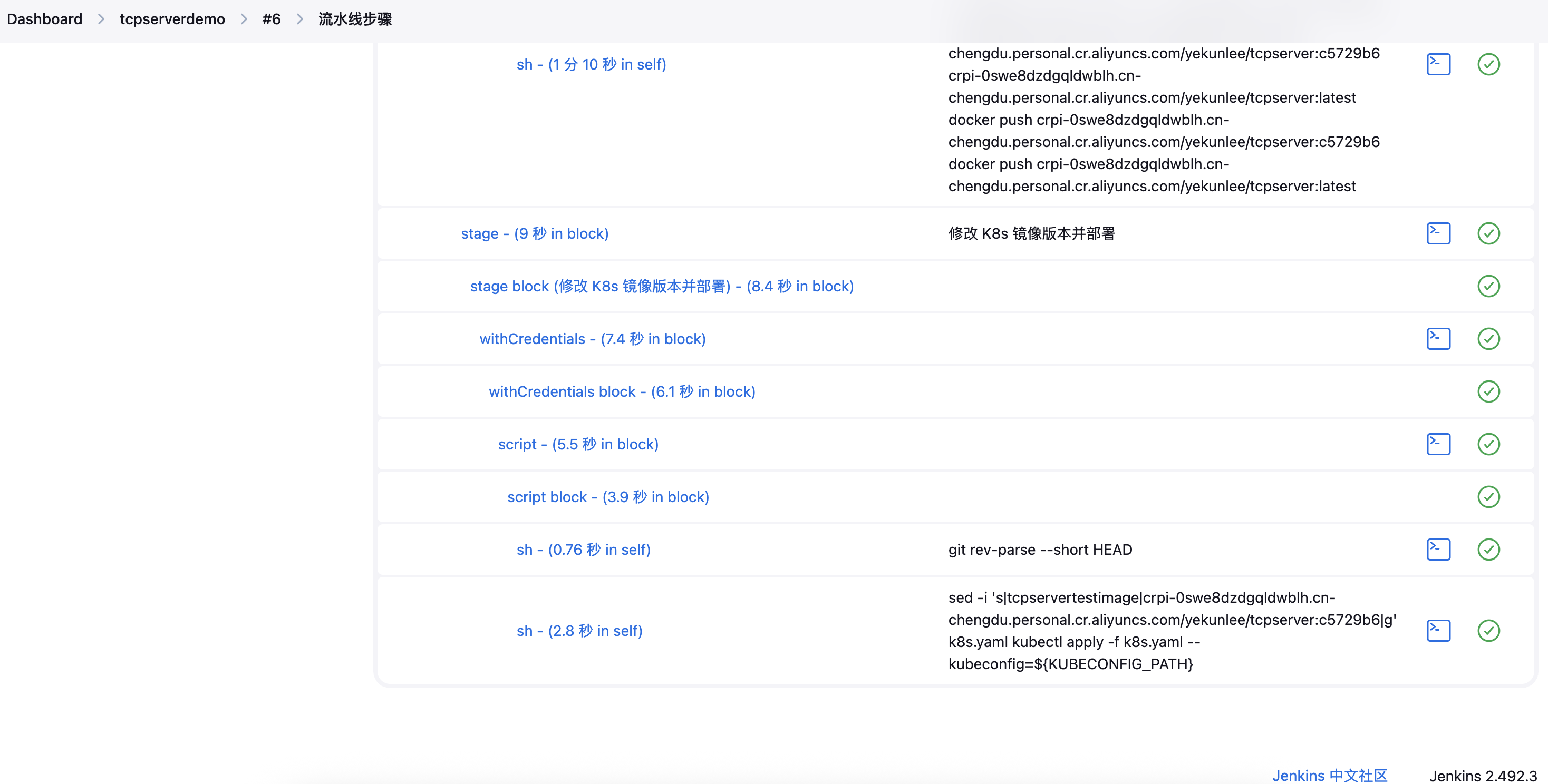 以上环境配置好以后,我们只需要把代码提交到gitee,再在jenkins点一下构建,就自动部署应用到k8s了,无需其他任何操作。