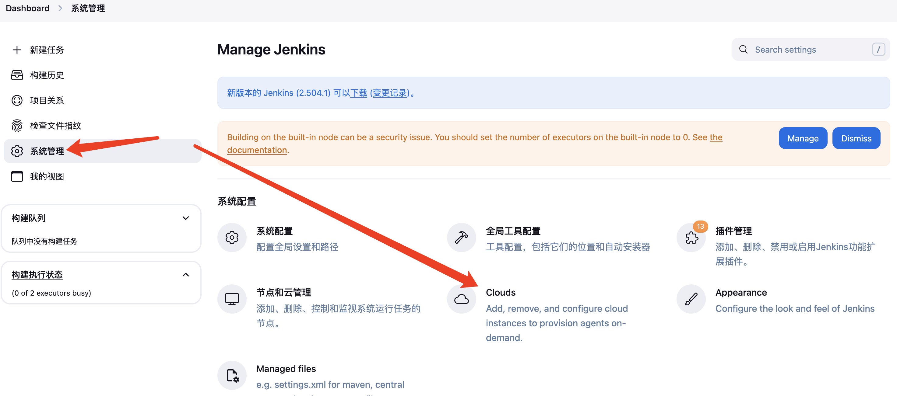 需要安装k8s插件,安装完成后才能新增k8s的cloud配置