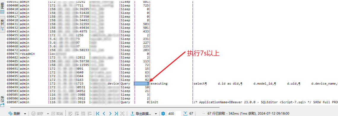 如下图,这种明显比较慢的SQL一眼就能看出来