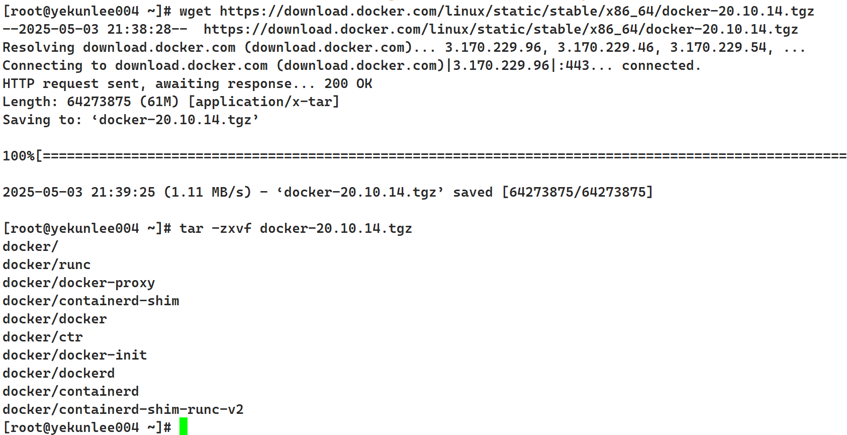 wget https://download.docker.com/linux/static/stable/x86_64/docker-20.10.14.tgz