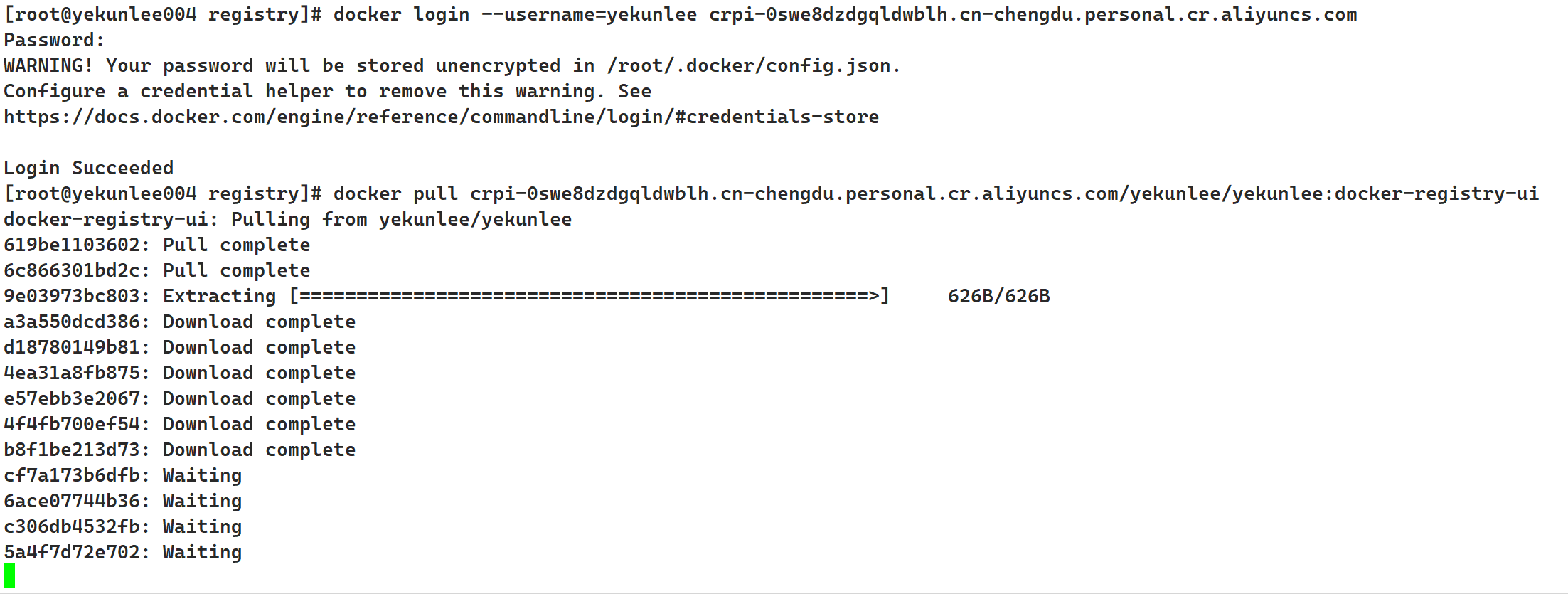 docker login --username=yekunlee crpi-0swe8dzdgqldwblh.cn-chengdu.personal.cr.aliyuncs.com