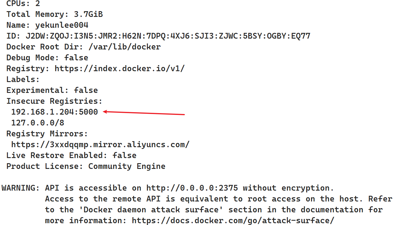 ExecStart=/usr/bin/dockerd -H tcp://0.0.0.0:2375 -H unix://var/run/docker.sock
